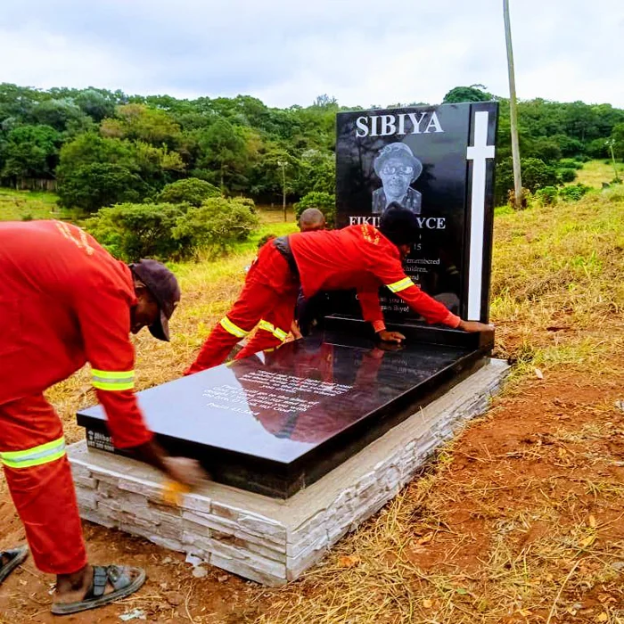 All Polished Black Granite Headstone and Base Memorial with Maintenance Flower Design. This memorial can be supplied in a different colour and material. Please request a price for your preferred colour or material.
